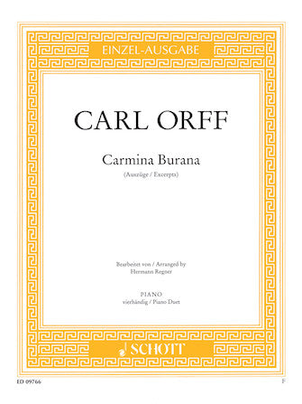Masterfully arranged for piano duet, these excerpts from Carmina Burana maintain the spirit of the original work. Carmina Burana, first performed in 1937, is based on an important collection of thirteenth-century poems found in the monastery of Benediktbeuren. Carl Orff made selections from this collection and in robust and delicate musical colors painted a manifold picture of life. Everything I have written up to now, and which you have unfortunately printed, you can shred into pulp. My collected works begin with 'Carmina Burana'. Carl Orff wrote to his publisher after the premiere. And so it was that his work caused a sensation in the whole world and continues to delight people of all cultures. The 'Carmina Burana' are written for solo singers, chorus and orchestra.