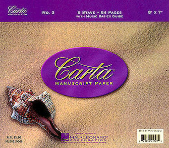 Spiral bound, 8x7, 72 pages, 6 stave, includes Music Basics chart.