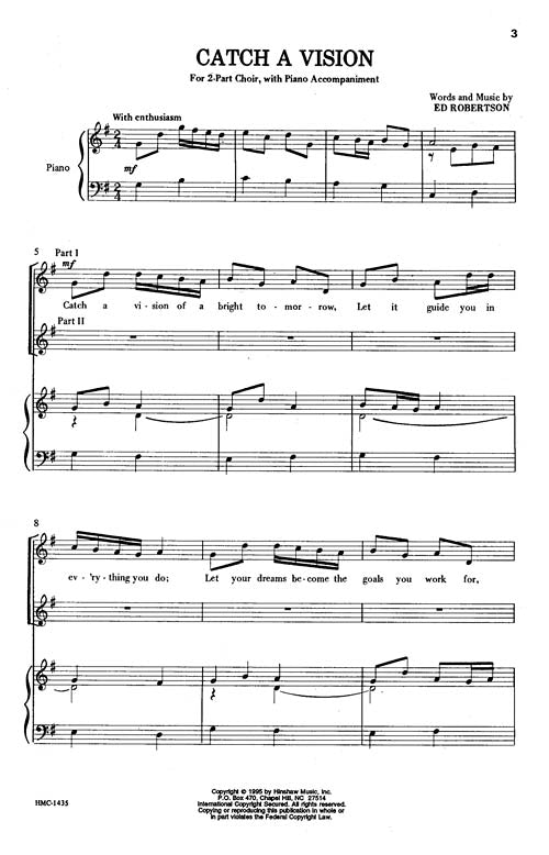 Upbeat and enthusiastic piece for two-part chorus (easy secondary) includes piano accompaniment. Difficulty Level: Easy Middle School, High School or Easy Adult. Duration - 00:02:24.