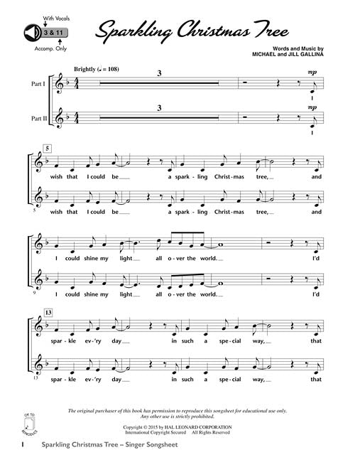 Catch the Holiday Spirit 8 Sparkling 2-Part Chorals for the Holiday Season Publisher: Shawnee Press Category: Choral Series: Collections Format: Paperback This versatile collection of eight holiday choral pieces lends itself perfectly for your holiday or winter concert programming. Each selection is a stand-alone arrangement, however, the collection contains a short rhyming linking script so that the songs can be performed together as a cohesive, holiday production. You can successfully use all or any combination of the eight songs. The Enhanced Teacher Edition includes piano/vocal arrangements, optional program script as well as choreography and staging suggestions. The enclosed CD-ROM offers reproducible singer and speaking parts. Whichever performance option you choose, Catch the Holiday Spirit will prove to be a positive and entertaining collection of holiday cheer for your singers and audience alike! Suggested for grades 4-8. ScorePlay - click to view score with recording. (https://youtu.be/8sjfbLP_IWY) Inventory # : 35030076 UPC: 888680038168 ISBN: 1495007405 Width: 8.5" Length: 11" Height: 0.221" Product Weight: 0.6 lbs. Number of Pages: