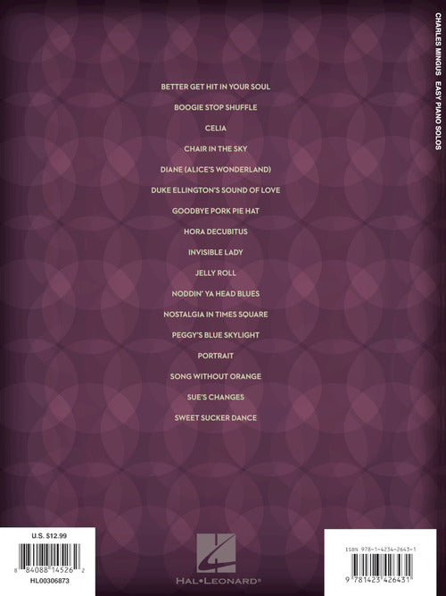 17 tunes from this master composer and bassist arranged for easy piano solo: Better Get Hit in Your Soul · Boogie Stop Shuffle · Celia · Chair in the Sky · Diane (Alice's Wonderland) · Duke Ellington's Sound of Love · Goodbye Pork Pie Hat · Hora Decubitus · Invisible Lady · Jelly Roll · Noddin' Ya Head Blues · Nostalgia in Times Square · Peggy's Blue Skylight · Portrait · Song with Orange · Sue's Changes · Sweet Sucker Dance.