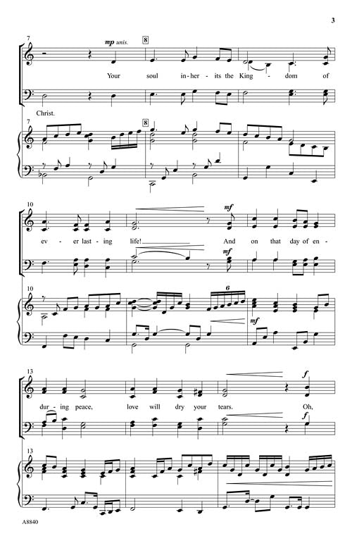 Uses: General, All Saints' Day, memorial Scripture: I John 3:1, Roman 8:17 There is deep warmth in this new original choral from arranger Brant Adams and songwriter Cindy Ovokaitys. This anthem is a vision of heaven and is full of promises for the believer making it ideal for memorials or times where solace and comfort are the theme.