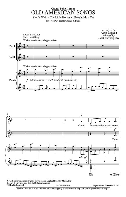 Old American Songs Choral Suite Ii 2 Part Aaron Copland