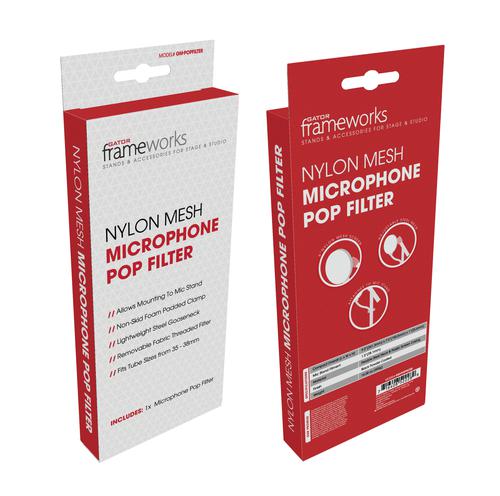 Features: · Nylon 6 inch. screen pop filter · 11.5 inch. goose neck and clamp included · C-Clamp will fit most standard microphone stand shafts and booms · Weights 2.5 lbs · Fully extends to 17 inch. x 5 inch. x 6.25 inch.