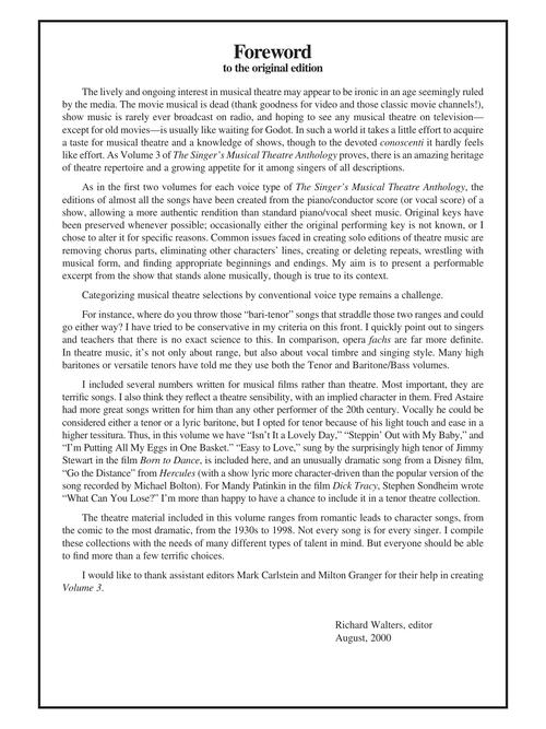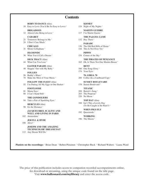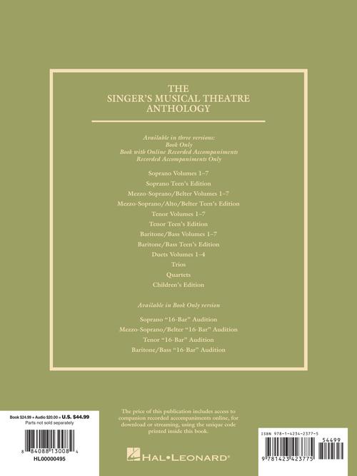 The world's most trusted source for great theatre literature for singing actors. The online audio includes piano accompaniments that you can download or stream. The book features authentic editions of each song in the original keys. The songs have been carefully chosen for each voice type and are culled from a wide selection of classic and contemporary shows. Audio is accessed online using the unique code inside the book and can be streamed or downloaded. The audio files include PLAYBACK+, a multi-functional audio player that allows you to slow down audio without changing pitch, set loop points, change keys, and pan left or right.