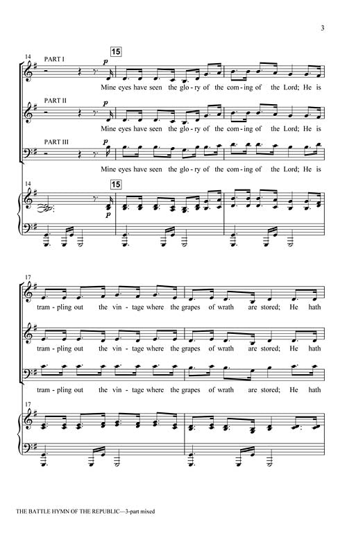 This patriotic favorite has now been arranged in accessible 3-part and SSA voicings by Lon Beery. In addition, the 3-Part Mixed has optional baritone notes for changing voices. Always an audience pleaser, your younger singers can now experience the power of this great song easily and more quickly. Available separately: 3-Part Mixed; SSA; Parts for Brass (tpt 1, tpt 2, tbn) and Timpani; StudioTrax CD. Duration: ca. 2:38.