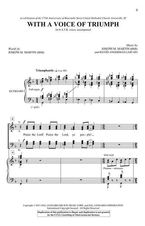 Uses: General, Concert, Easter, Advent Scripture: Isaiah 40:5; Revelation 5:13 Raw power characterizes the opening of this festival anthem from the Cathedral Series. Massive chords sweep forward bringing in fanfare-like choral acclamations of praise. Use of a solo reed adds shine, and the martial like theme is a confident call to worship and invitation to prepare the way of the Lord with praise. The church was made for song, and the middle contrasting section celebrates this legacy of praise by increasing intensity until breaking forth with jubilant alleluias. A final canon caps this majestic offering!